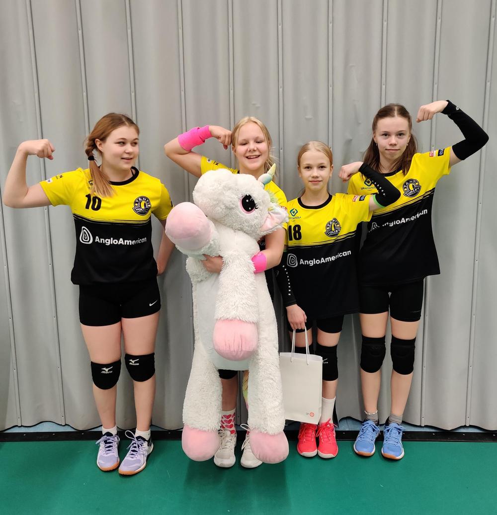 TäVo Joutsenten pelaajat Nea, Aliisa ja Ella kertoivat saaneensa Junnuvaskoolista hurjasti uusia oppeja ja rohkeutta. Valmentajana toimi Noora Kosola. Joukkueen sijoitus 5.
