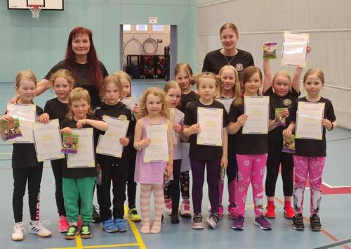 Lentopallokoululaiset saivat muistoksi diplomit hienosti sujuneesta palloilukaudesta.