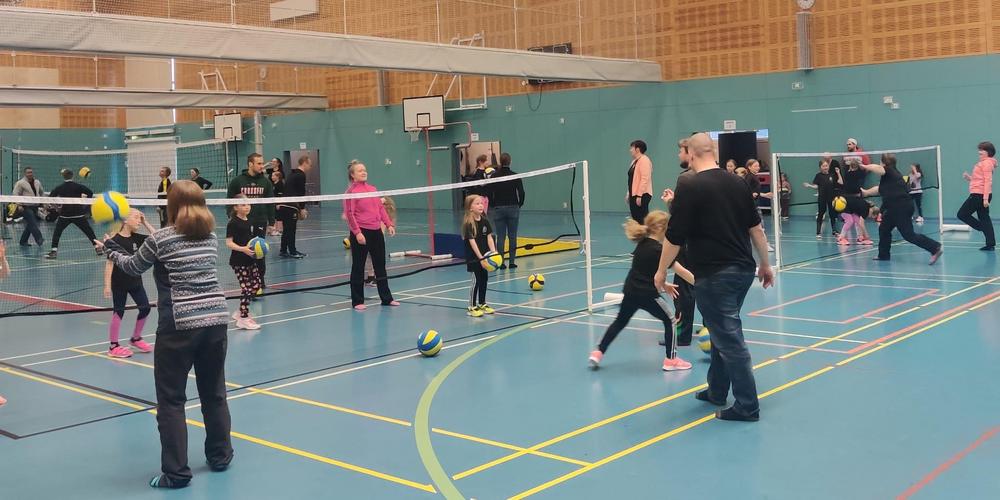 Juhlijoita hallille oli kerääntynyt yli satapäinen joukko ja kaikille riitti mukavasti puuhaa. Oli touhunurkkausta perheen pienimmille, perhepalloa, vapaata pallottelua sekä istumalentopalloa.