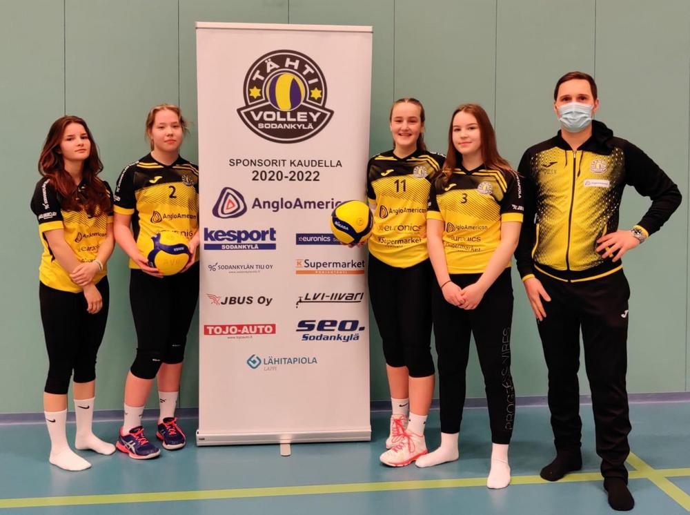 E-junnut ja valmentajat Sirpa Willman ja Tommi Lehtilä.